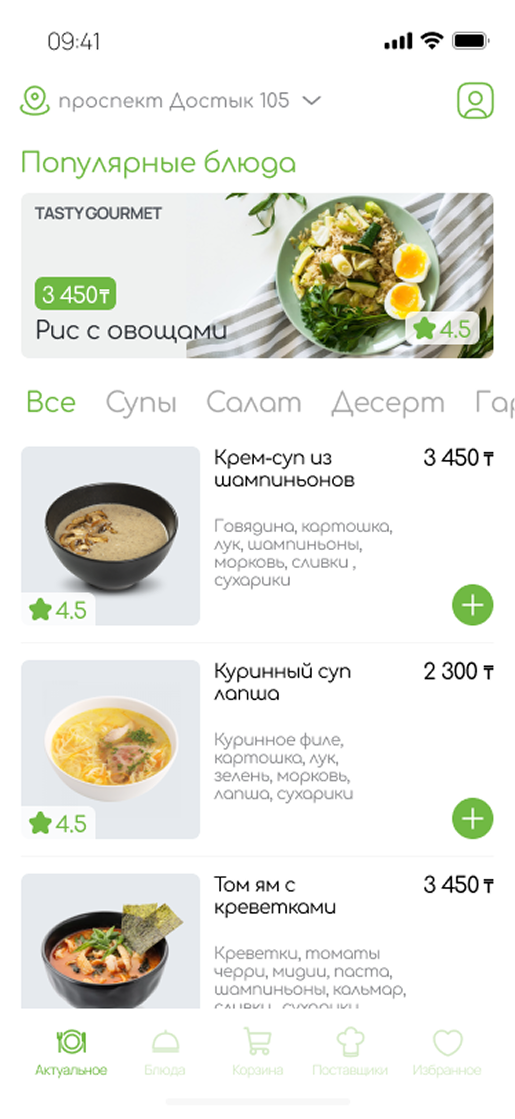 В приложении вас ждет огромный выбор блюд на любой вкус. От домашней выпечки до изысканных горячих блюд.